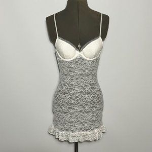 VICTORIA'S SECRET White "The Lacie" Lingerie With Lace Ruffled Back, Adjustable Straps, Stretchy Lace Bodice And Hook And Eye Closure.
