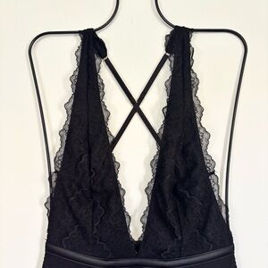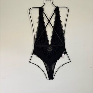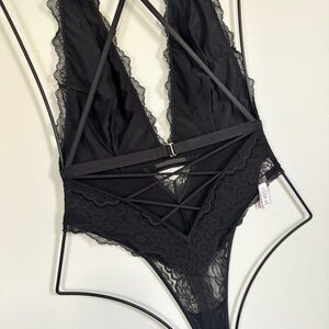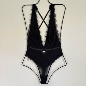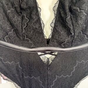 VICTORIA’S SECRET Women’s Black Opaque Stretch Lace Deep V Teddy Strappy Size XS