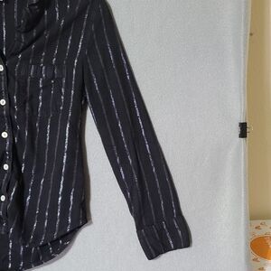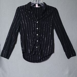 VICTORIA'S SECRET Women's Black Striped Pajama Top Shirt - Size X-Small