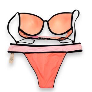 VICTORIA'S SECRET- Women's- Coral Pink Bikini with Black Trim- SIZE 32 C- NWT