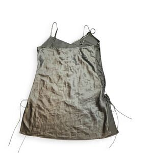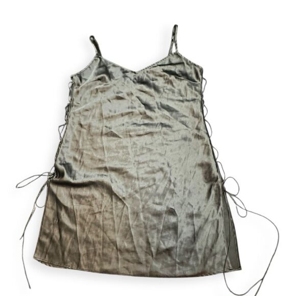 Victoria’s Secret gray-green satin slip dress with lace-up sides and adjustable straps. Elegant and sexy with a silky sheen, perfect for layering, lounging, or wearing out.