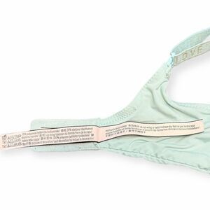 Victoria’s Secret push-up t-shirt full coverage bra in a refreshing mint green-blue shade. Designed to give a smooth, seamless look under clothes while offering both lift and comfort. Features underwire cups, adjustable straps with “LOVE” logo detail, and a lightly padded design for everyday wear.