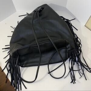 Beautiful black vegan leather mini backpack from Victorias Secret with fringe detailing. Very clean interior and bag is in excellent condition.