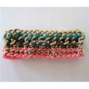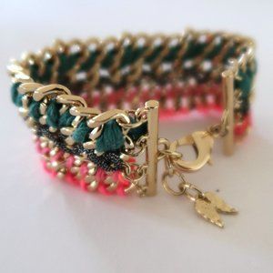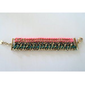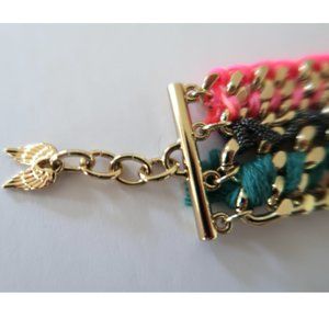 Victoria's Secret 1 1/8" wide chain bracelet with colored ribbon woven through.