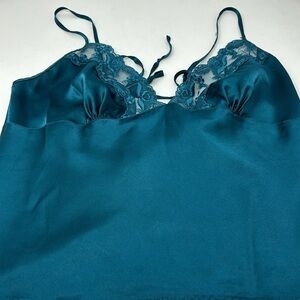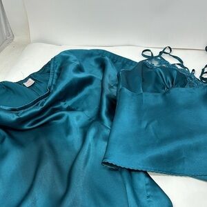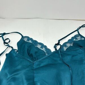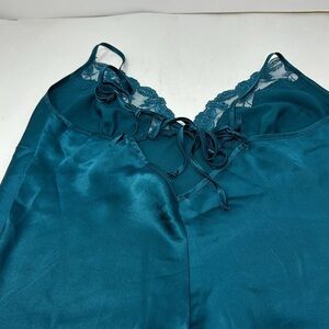 VICTORIA'S SECRET Sexy pajamas with pants size XS satin with lace on the bust, beautiful and powerful turquoise green, bra cup measurement is leg size A, it is a pajama for someone petite and thin, It has a slightly stretched thread in the fabric and the hem of the pants was made