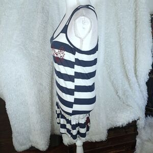 VICTORIA'S SECRET PINK  NAVY & WHITE STRIPE RUFFLE BOTTOM LONG TANK TOP SZ.S EUC.