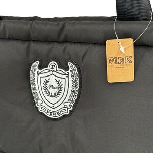 VICTORIA'S SECRET Quilted Tote Bag with Crest Graphic Black NWT