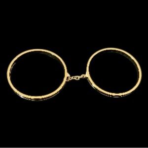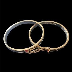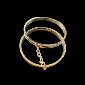 VICTORIAS SECRET-TWO GOLD TONE BANGLE BRACELETS CONNECTED BY A GOLD TONE CHAIN