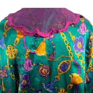 VICTORIAS SECRET VINTAGE PAJAMA SET in a teal green purple and gold tassel satiny print