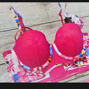 VICTORIA'S SECRET X MARY KATRANTZOU FLORAL LIMITED EDITION LONG LINE BRA 32D