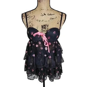 VICTORIA’S Secret Babydoll Slip Black Lace Flirty Sexy Little Thing top. 34 B