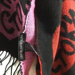 VICTORIA’S Secret Love Victoria Fringed Red Pink Black Color Block Scarf