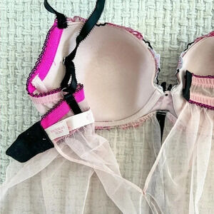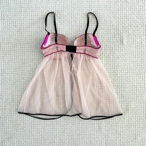 baby pink bustier babydoll tank top with floral embroidery on the bust and a sheer mesh skirt