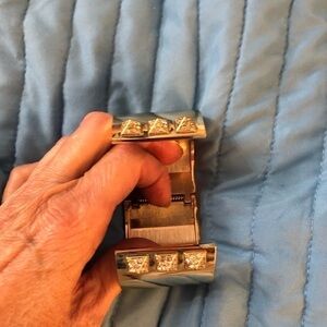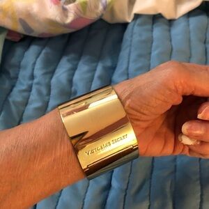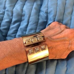 Victoria’s Secret dazzling bracelet with six pyramid style embellishment with stones easy to open and close spring opening Gold tone cuff bracelet