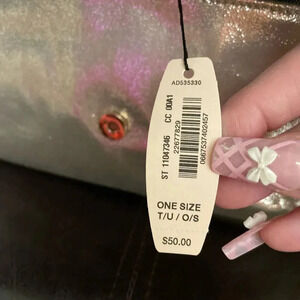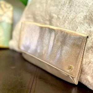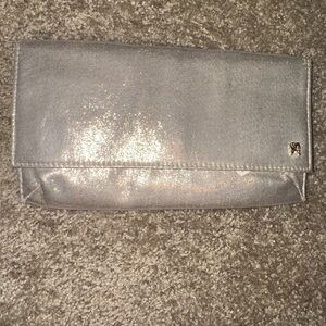 Silver/Gold Shimmery Iridescent Wallet/makeup bag from Victoria's Secret, Could be used as a wallet, clutch, mini purse, makeup bag, etc. Has a super pretty silver and gold sparkly sheen. Dusty gold.