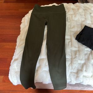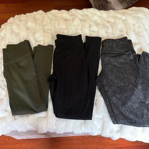 VICTORIAS SECRET , VICTORIA SPORT , three pair of exercise/ leggings.. but two get the black pr free. ,, the olive green and black printed in EUC, , black pr is free. !!