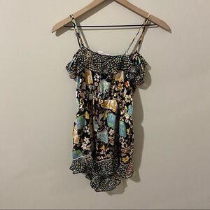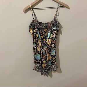 VICTORIA SECRET Black Fancy Floral Flounce Romper