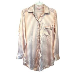 VICTORIA’S SECRET Pink and Ivory Stripes Buttons Down Night Shirt.Size S