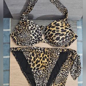 VICTORIA'S SECRET SWIM CHEETAH SKULL Y2K RETRO BOMBSHELL BIKINI 2 PIECE SWIMSUIT