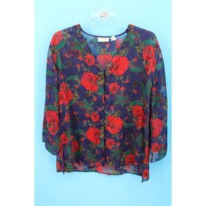 VICTORIA'S SECRET VINTAGE GOLD LABEL FLORAL 6 BUTTON SHEER SEXY SLEEP SHIRT