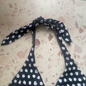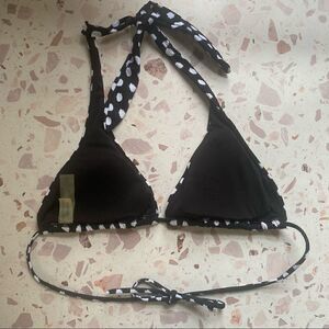 VICTORIA'S SECRET BLACK & WHITE POLKA DOT BIKINI TOP size small. Great preowned condition. Triangle bikini style that as a tie enclosure and Removable padding. Super cute.