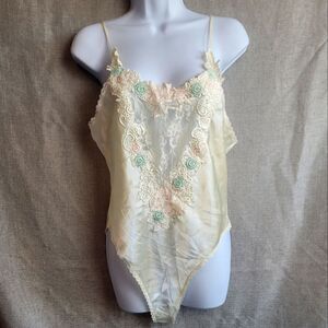 Stunning vintage Victoria's Secret Gold label teddy. In great vintage condition, floral accents and lace. Size medium. Off white color.