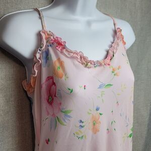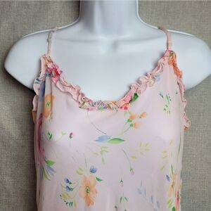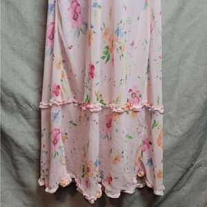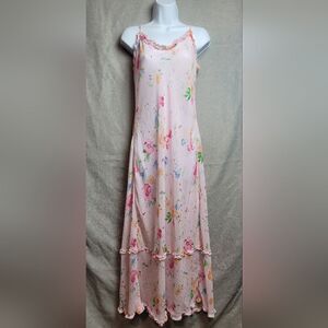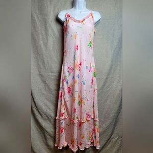 Stunning 90s Victoria's Secret floral chiffon, ruffle hem dress. Deep plunge in the back. Size medium