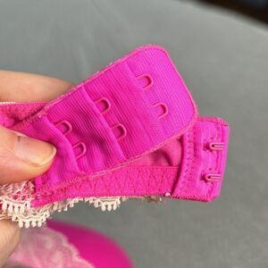 Victoria Secret Size 34C Lined Demi Hot Pink Bra With White Lace