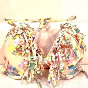 VICTORIA’s SECRET PASTEL BIKINI TOP WITH CURLY FRINGE SIZE 34C