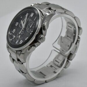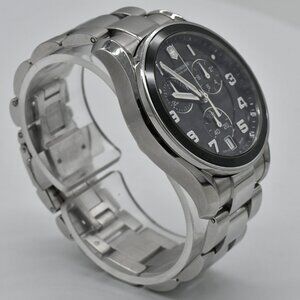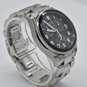 Victorinox 241544 classic black ceramic chronograph men's watch. ETA 4 jewel G10.211 movement. There is a new battery and it is keeping good time with all functions working correctly. It is water resistant up to 100m and currently will fit a wrist up to 7 1/8" and does not have additional links. It was produced in 2012 and had an MSRP of $695. It is showing wear throughout the watch including case, case back and band. The crystal is in very good shape. Please refer to pictures for additional condition details. Let me know if you have any questions.