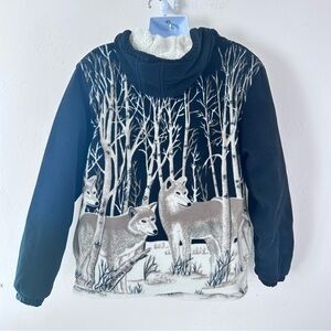 VICTORY RUGGED WEAR VTG 90s Sherpa Lined Fleece Wolf Nature Jacket