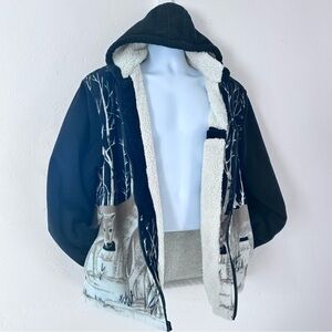 VICTORY RUGGED WEAR VTG 90s Sherpa Lined Fleece Wolf Nature AOP Jacket Men L EUC