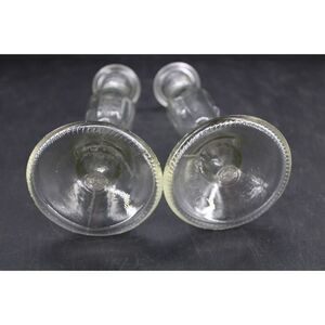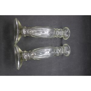 This product is a set of two versatile candlesticks or vases from Vidrios San Miguel, a European brand known for elegant glassware. Made from recycled glass with a clear appearance and a subtle green tint, each item has a diameter of 3.25 inches and a height of 8.75 inches, suitable for holding stemmed flowers or dinner candles. Handmade in Spain using a fused glass production technique, these original pieces feature a timeless design that can enhance the ambiance of any room. Perfect for adding a touch of sophistication to your decor, these candlesticks/vases are a stylish and eco-friendly choice.