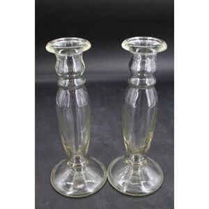VIDRIOS San Miguel 2 Candlesticks Vases Clear Green Tined Recycled Glass 8.75"
