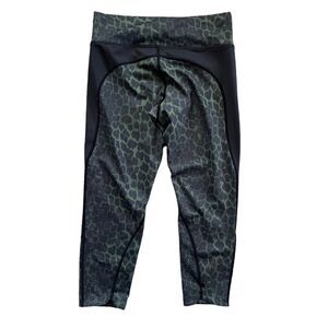 VIE ACTIVE Cropped Leggings Leopard Print Green Black Size Small