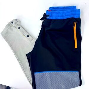 These joggers combine a sleek black design with vibrant blue accents, offering a stylish and comfortable fit. The elastic waistband ensures a secure and flexible wear, while the color blocking adds a modern touch. Perfect for both casual and athletic activities, these sweatpants are a versatile addition to any wardrobe.