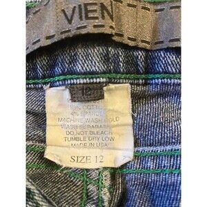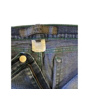 VIEN Jeans Women's 12 Faded Blue Stretch Denim Wide Boot Green Stitch USA Made Y2K -RARE