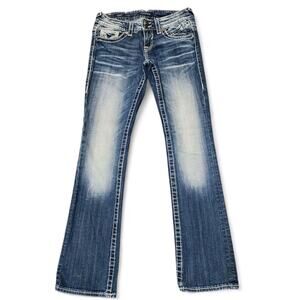 VIGOSS Dallas Bootcut Jeans Thick Stitch Embroidered Flap Pockets Low Rise Sz 2
