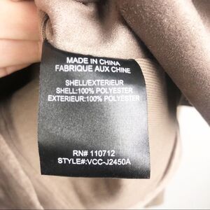 Adorable asymmetrical style Moto jacket by VIGOSS. Optional zip front. A taupe tan color. Very classy but trendy and fun. Great condition. Size Large.