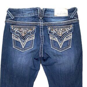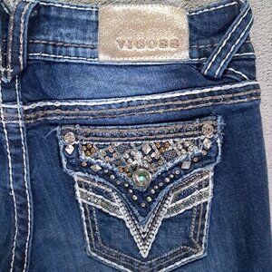 VIGOSS Jeans Women 33x31, Tag 5/6x33 The New York Boot Cut Flaps Blue Stretch Embellished