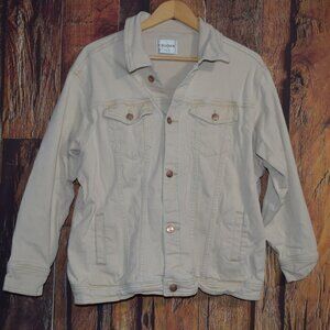 VIGOSS STRETCHY Women's Sz L Beige Denim Jean Jacket - EXCELLENT CONDITION