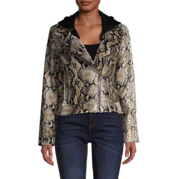 VIGOSS Snakeskin Print Full Zip Moto Jacket sz M Biker Animal PU Leather Grunge