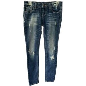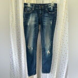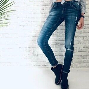 VIGOSS Studio The Dublin Skinny Distressed Dark Blue Wash Denim Jeans 26