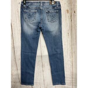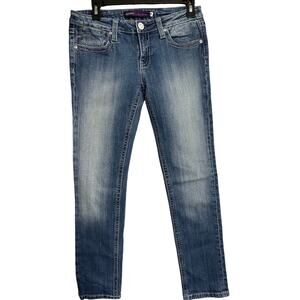 VIGOSS The Bronx Skinny Jeans Womens Junior Size 7 Blue Denim Embroidered Pocket