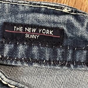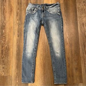 VIGOSS The New York Skinny Jeans Womens Size 3/4 Denim Rhinestones Ankle Stretch Low-Rise Med Wash