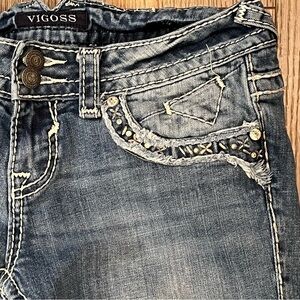 VIGOSS The New York Skinny Jeans Womens Size 3/4 Denim Rhinestones Ankle Stretch