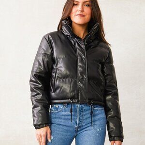 VIGOSS Women Cropped Puffer Jacket Zip-Up Black Size S