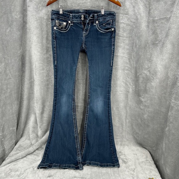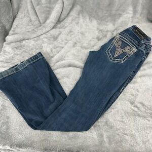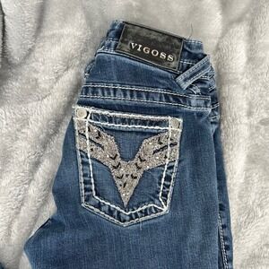 VIGOSS Womens Chelsea Flare Jeans Dark Wash Embellished Pockets Size 5/6