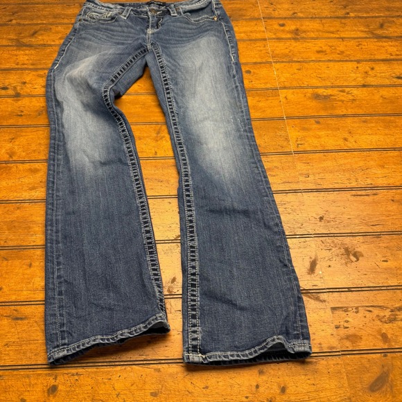 Keywords: VIGOSS Jeans, Slim Bootcut, Embellished Pockets, Medium Wash Denim, Distressed Jeans, Womens Denim, Casual Wear, Designer Jeans, Fashionable Denim, Western Style, Comfortable Fit, Stitched Jeans