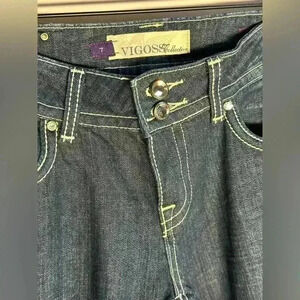 VIGOSS Y2K Low Rise Bootcut Bling Gem Jeans Dark Wash Size 7 Glam Whimsy goth